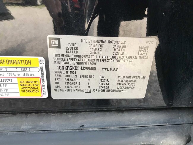 - VIN : 1GNKRGKD5HJ299408